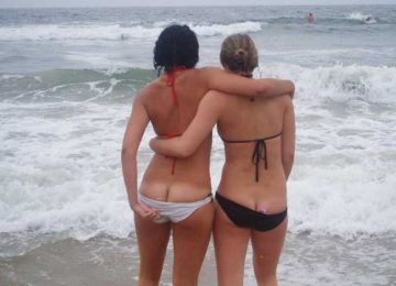 Hot naughty teens in sexy bikinis caught tanning on beach
